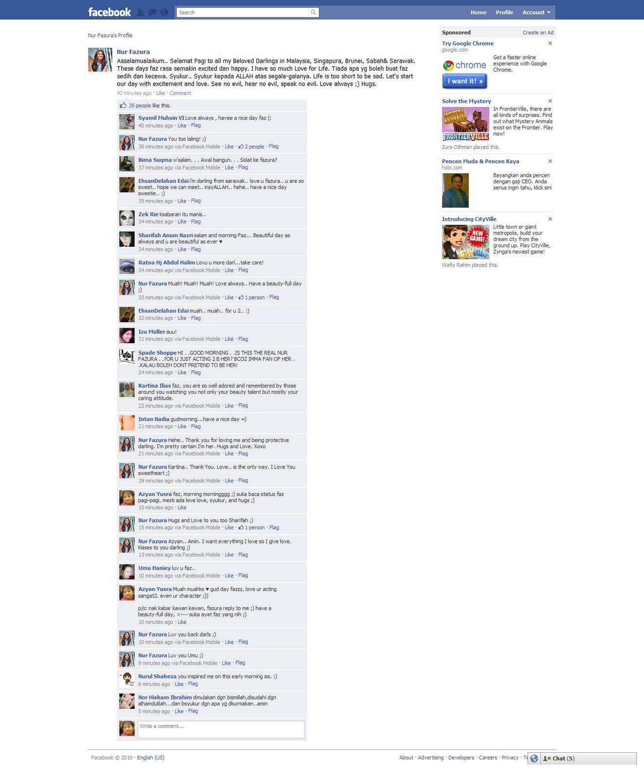 Jadi, itu aku. Memang aku perasan dan aku memang suka status yang dia post kat FB. Even kadang-kadang, aku quote status dia kat wall aku. Eheh ;pJeng jeng jeng. Tengok gambar bawah nih. Dia reply, Fazura reply ;))